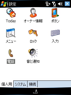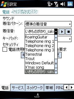 普通の機種なら、着メロのサイトからダウンロードして簡単に設定可能ですが、この機種はもとがWindows Mobile 5.0というOSが入っているスマートフォンなのでちょっとコツが入ります。まず電話の着信音の設定からです。